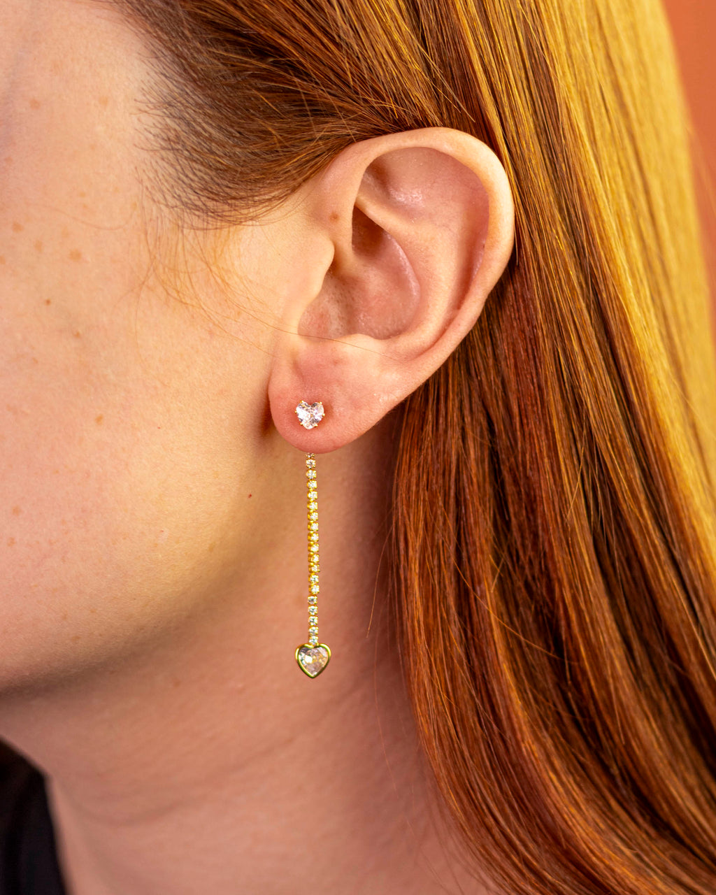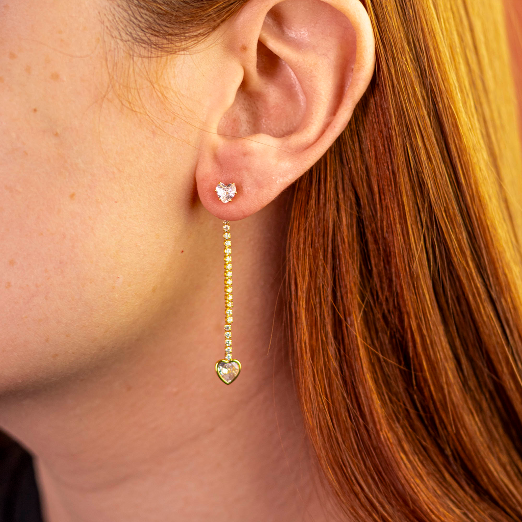 Romance em movimento com brilho intenso: o Brinco Pendente Coração Cravejado Longo Cristais combina simbolismo romântico com glamour deslumbrante. Perfeito para eventos especiais, encontros românticos ou ocasiões que pedem elegância extra. O movimento da corrente de cristais adiciona dinamismo e luminosidade ao visual.