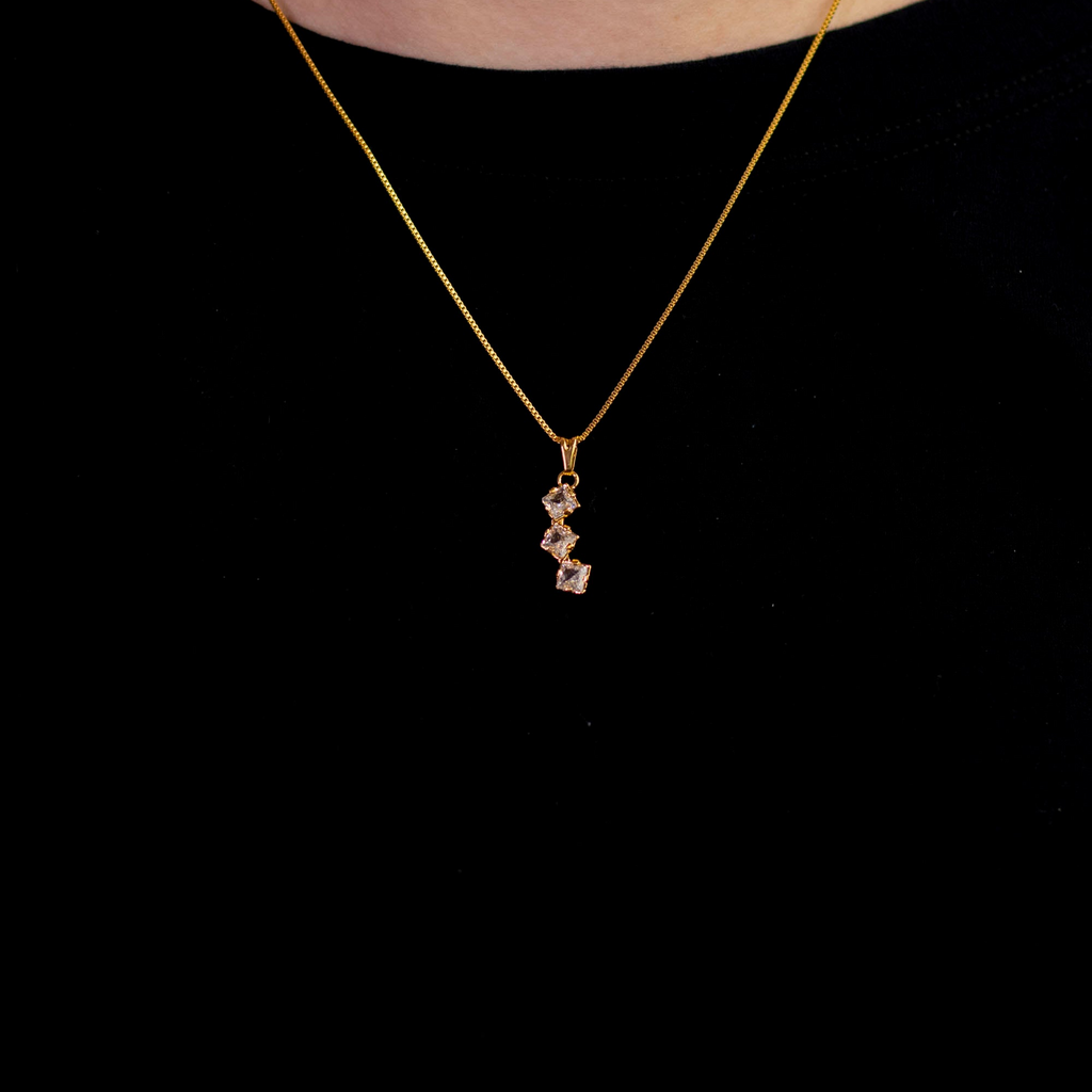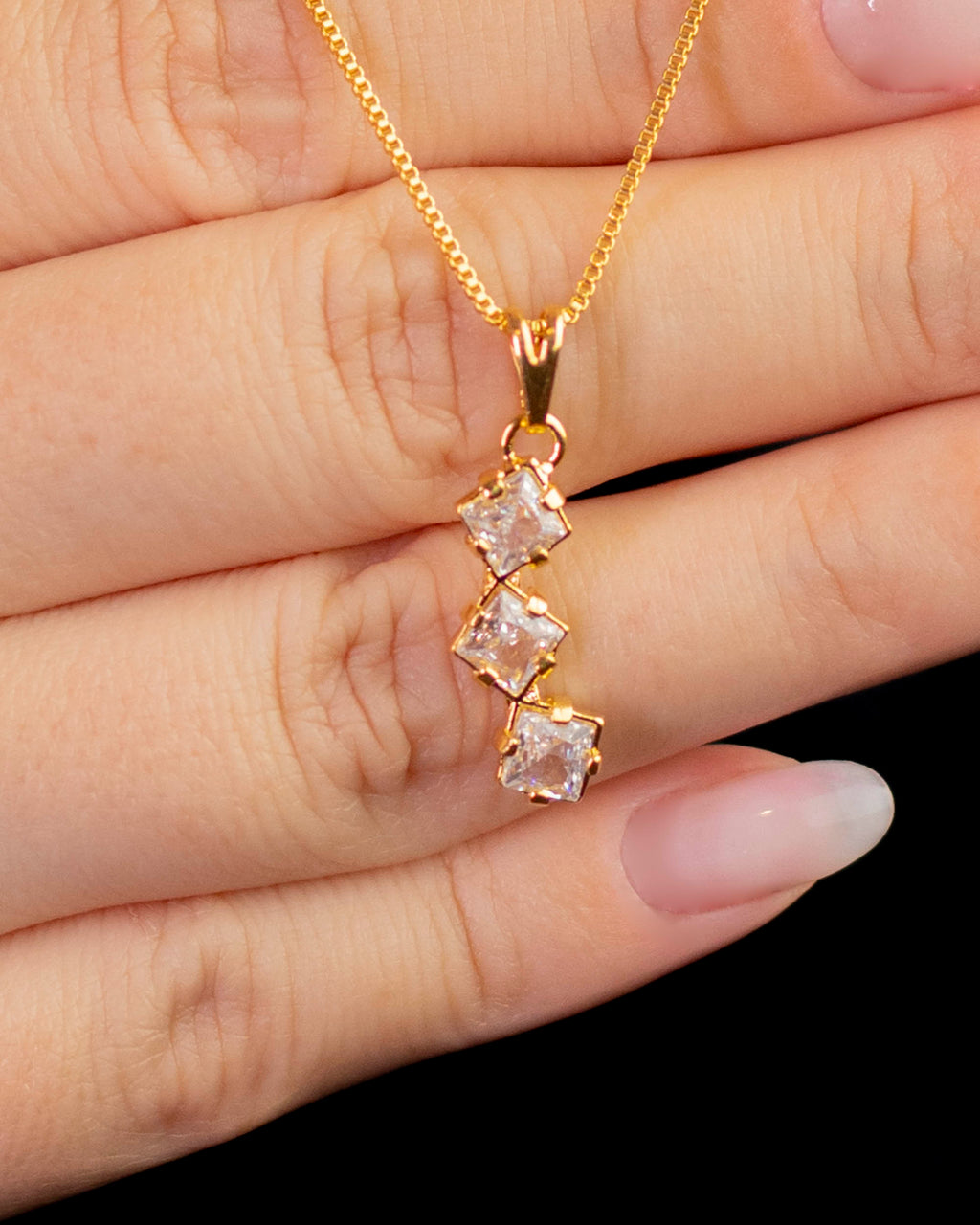 Acabamento: Pingente com três zircônias quadradas em sequência